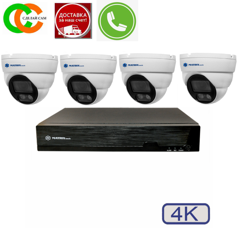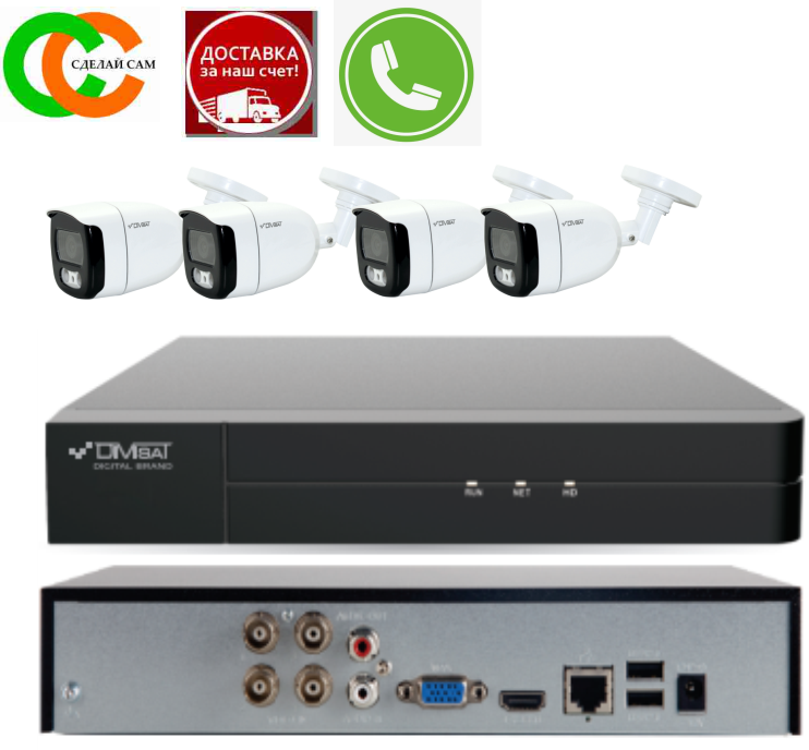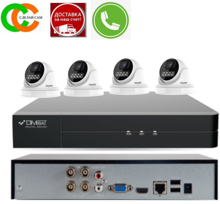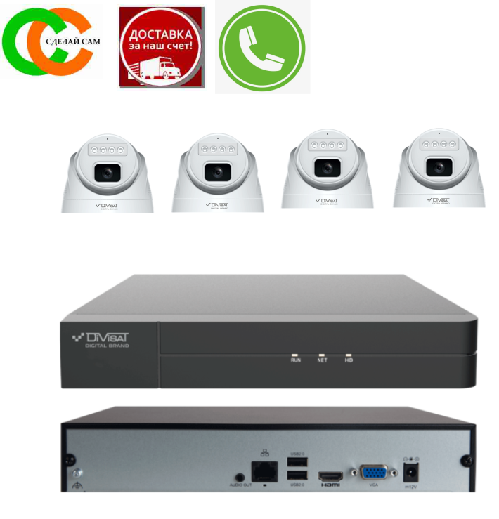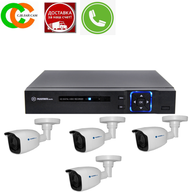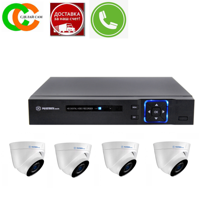 Каждый комплект включает полный набор оборудования для организации системы видеонаблюдения: